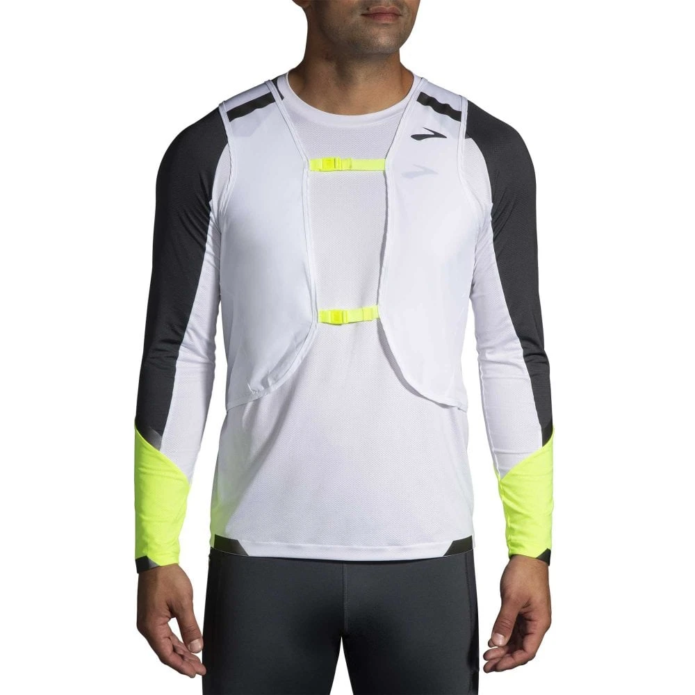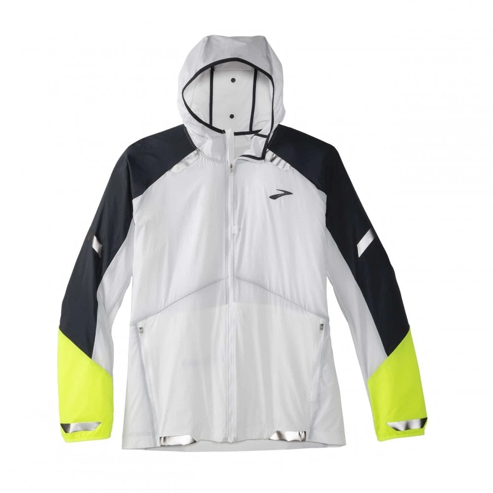 Jacket stows into a built-in pack you can wear like a vest. Perfect if the clouds part mid-run.