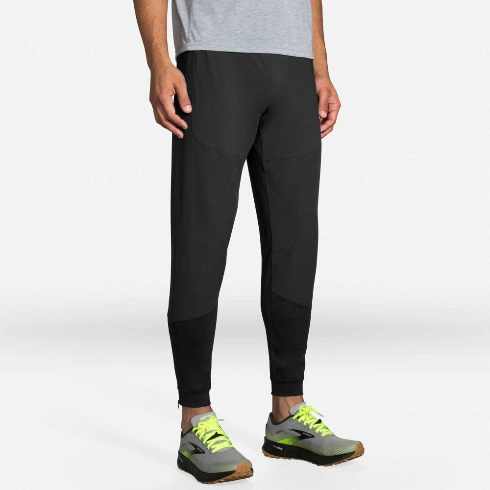 The mens Brooks Hybrid mens running pants have been designed to remain super comfortable in light rain and windy conditions. They have stretch for when you’re moving quickly and extra panels for durability where needed. They have been designed as an upgrade to the more basic runner’s trackster.