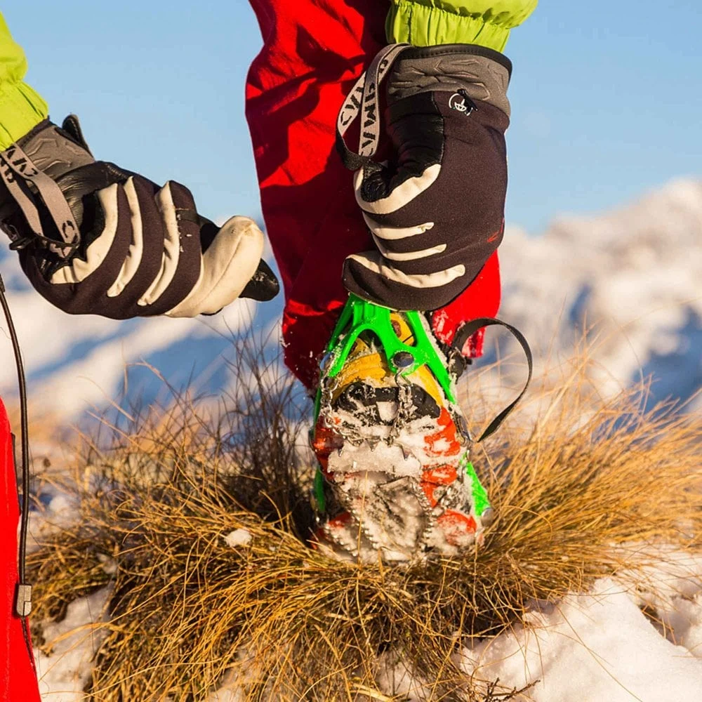 These crampons are aggressive spikes designed to pull over your walking or running shoes, for the most extreme mud or mountain conditions with deep snow and ice.