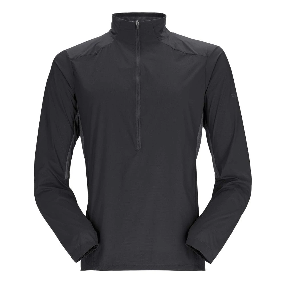 Rab describe the men’s Windveil windproof mid-layer as: “The Windveil Pull-On is built to offer windproof protection on mountain runs or fast hiking days. It combines wind resistant, breathable, and protective Pertex® Quantum Air with strategically placed panels of Motiv™ Aero mesh fabric. As you pick up the pace or face steep inclines, high heat areas enjoy enhanced breathability. Quick drying and fast wicking, it regulates your temperature without breaking your flow while offering protection from howling mountain wind.