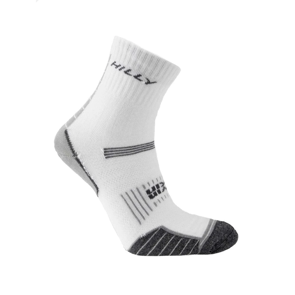 The durable heel and toe sections help you put the miles in making Twin Skin® a trusted partner of many runners. The LYCRA® SPORT fibre ensures a close, comfortable fit. Available in a variety of colours and also in a socklet length. Socks designed and manufactured by HILLY, the UK’s premier technical performance sock company for runners – founded by Ron Hill.”